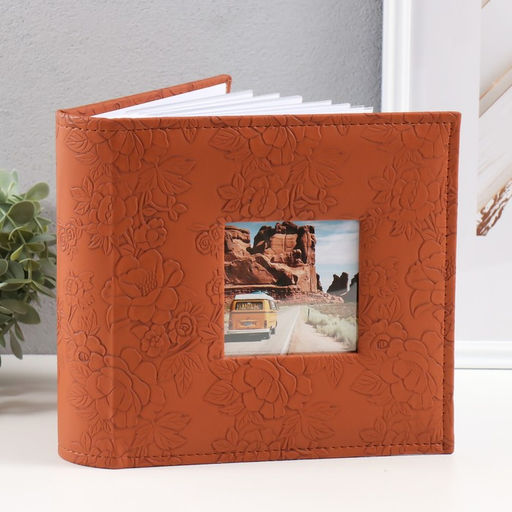 • Фотоальбом на 200 фото 10×15 см кожзам «Цветочная текстура», бумажные листы, коричневый, 5×23×22 см