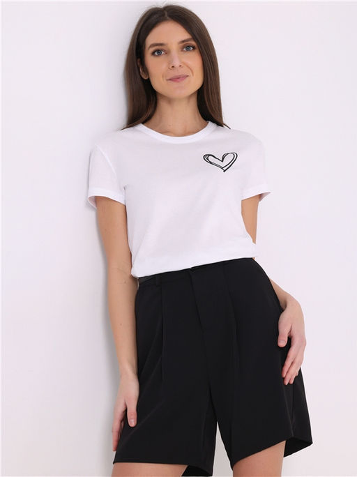 футболка,хлопок 100%,кулир / хлопок 100%,белый / - / Двойное сердечко / - / - / -,Футболка выполнена из кулира - легкого хлопкового полотна. Изделие свободного покроя с короткими рукавами и округлым вырезом горловины, украшено дизайнерским принтом. Уход: только машинная стирка (руками не стирать!) при температуре 40 градусов, без предварительного замачивания. Изделия с печатью перед стиркой необходимо вывернуть на изнаночную сторону.