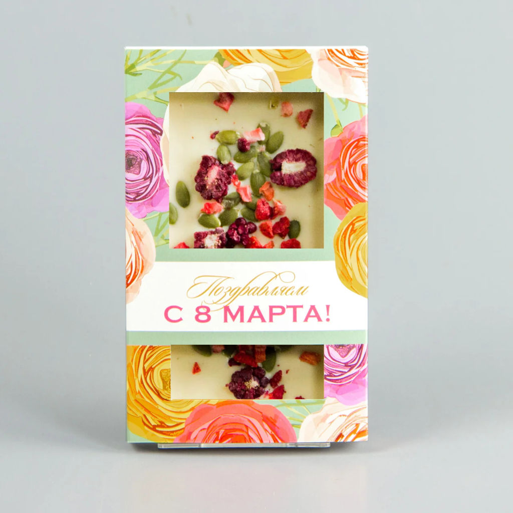 Белый шоколад с клубникой, ежевикой и семечками тыквы, коробочка с 8 марта #9