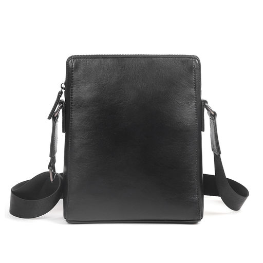 Мужская сумка через плечо MIRONPAN в черном цвете выполнена из натуральной гладкой кожи. Основное отделение закрывается на молнию с