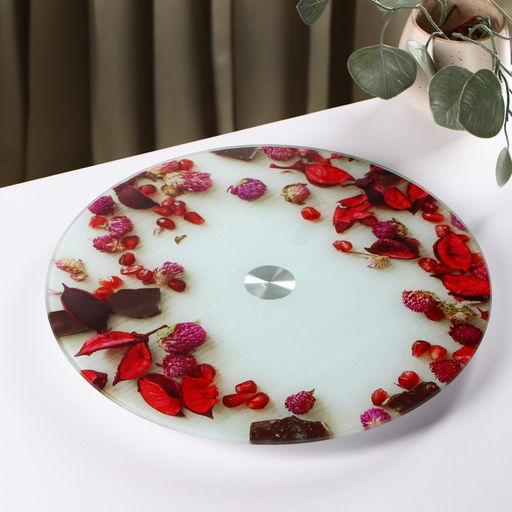 • Подставка для торта Доляна «Розы в шоколаде», d=32 см, вращающаяся, стекло, разноцветнаяㅤ