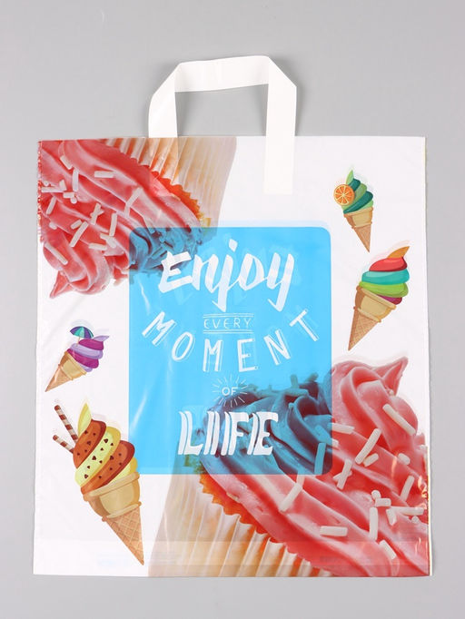 Цена за 50 шт. Пакет "Сладкая жизнь", полиэтиленовый с петлевой ручкой, 38 х 42 + 3 см, 37 мкм