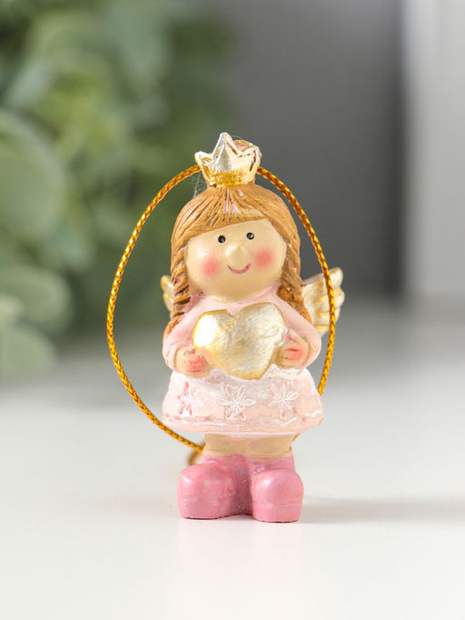 Цена за 2 шт. Фигурка - подвеска полистоун «Малышка-ангел в розовом платье, с сердцем в руках», ёлочная игрушка, 3×2.5×5.5 см