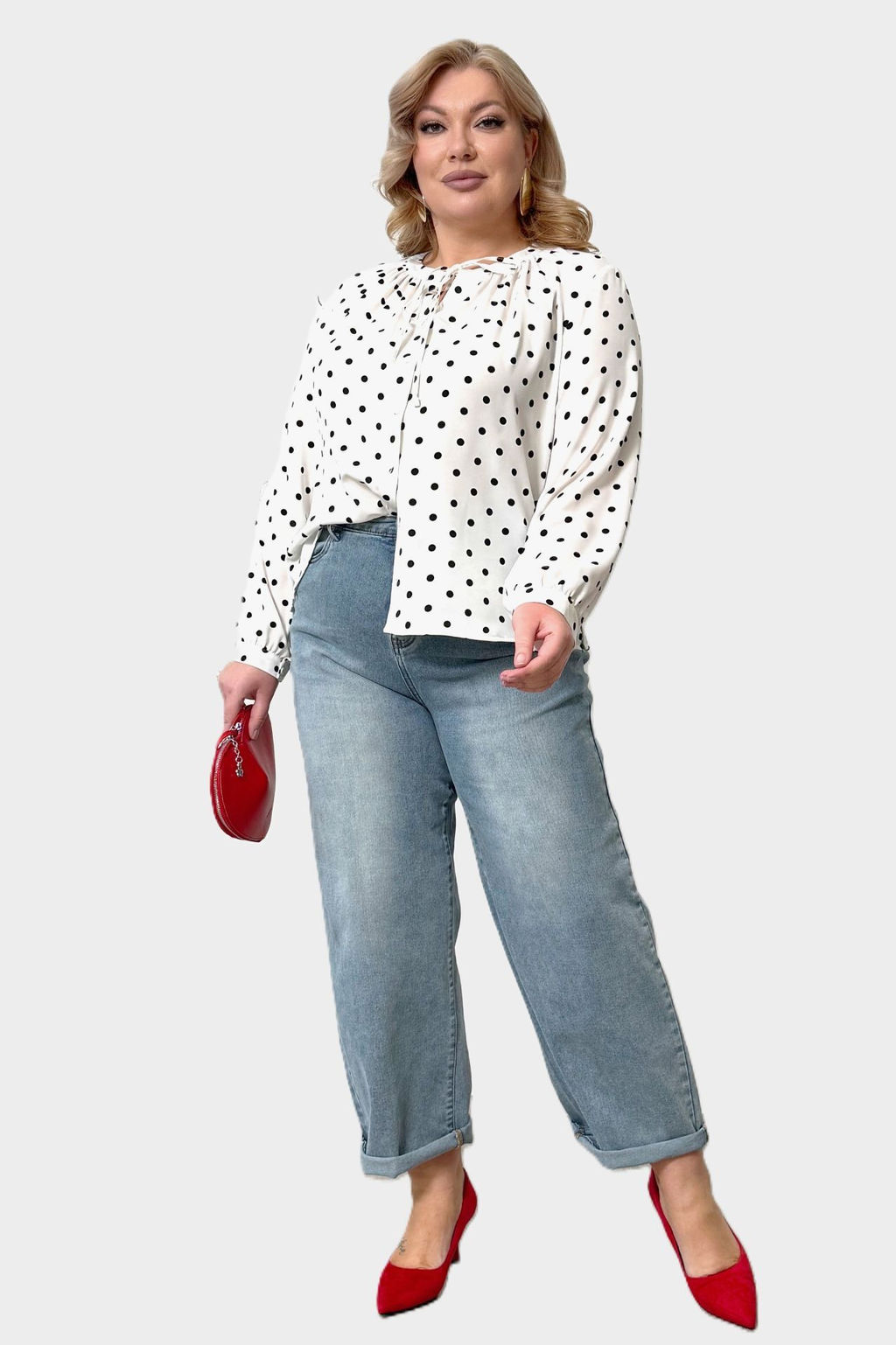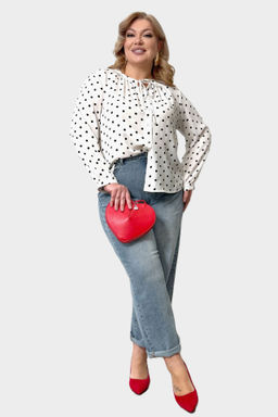 Блузка с завязкой на груди "горошек" белая