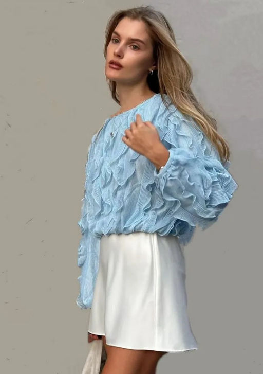 K13520 Лонгслив с рюшами ГОЛУБОЙ
