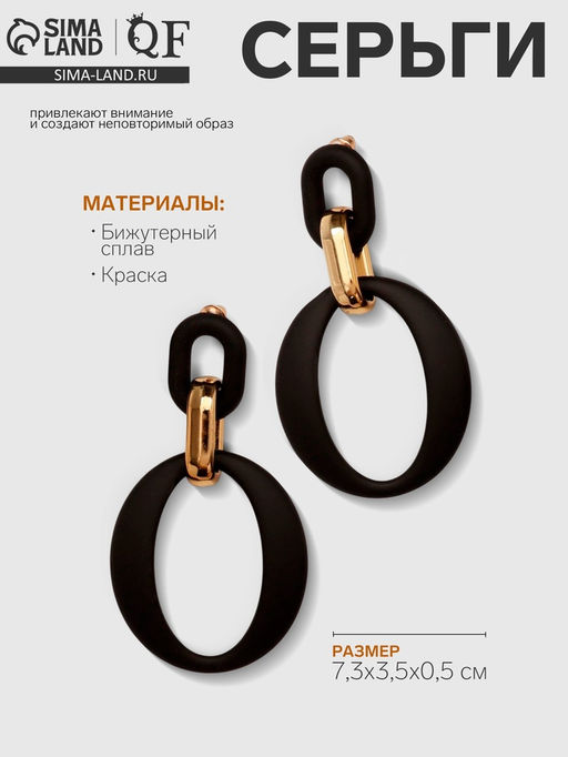 Серьги металл «Цепь» кольцо и овал, 3 звена, цвет золотисто-чёрный