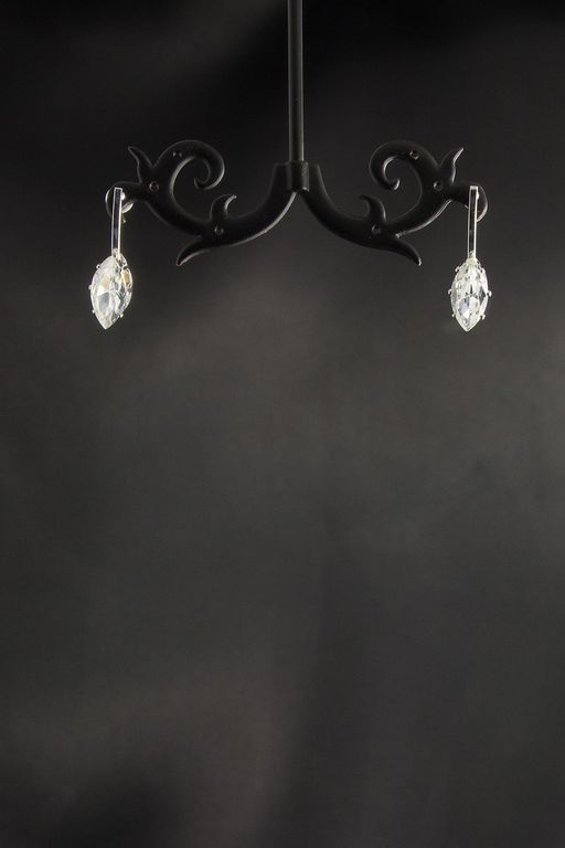 Классические серьги выполнены из металла серебрянного цвета и украшены сверкающим кристаллом.