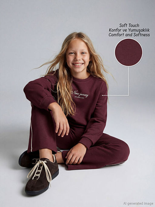 Bisiklet Yaka K?z ?ocuk Soft Touch Sweatshirt ve E?ofman Alt?
