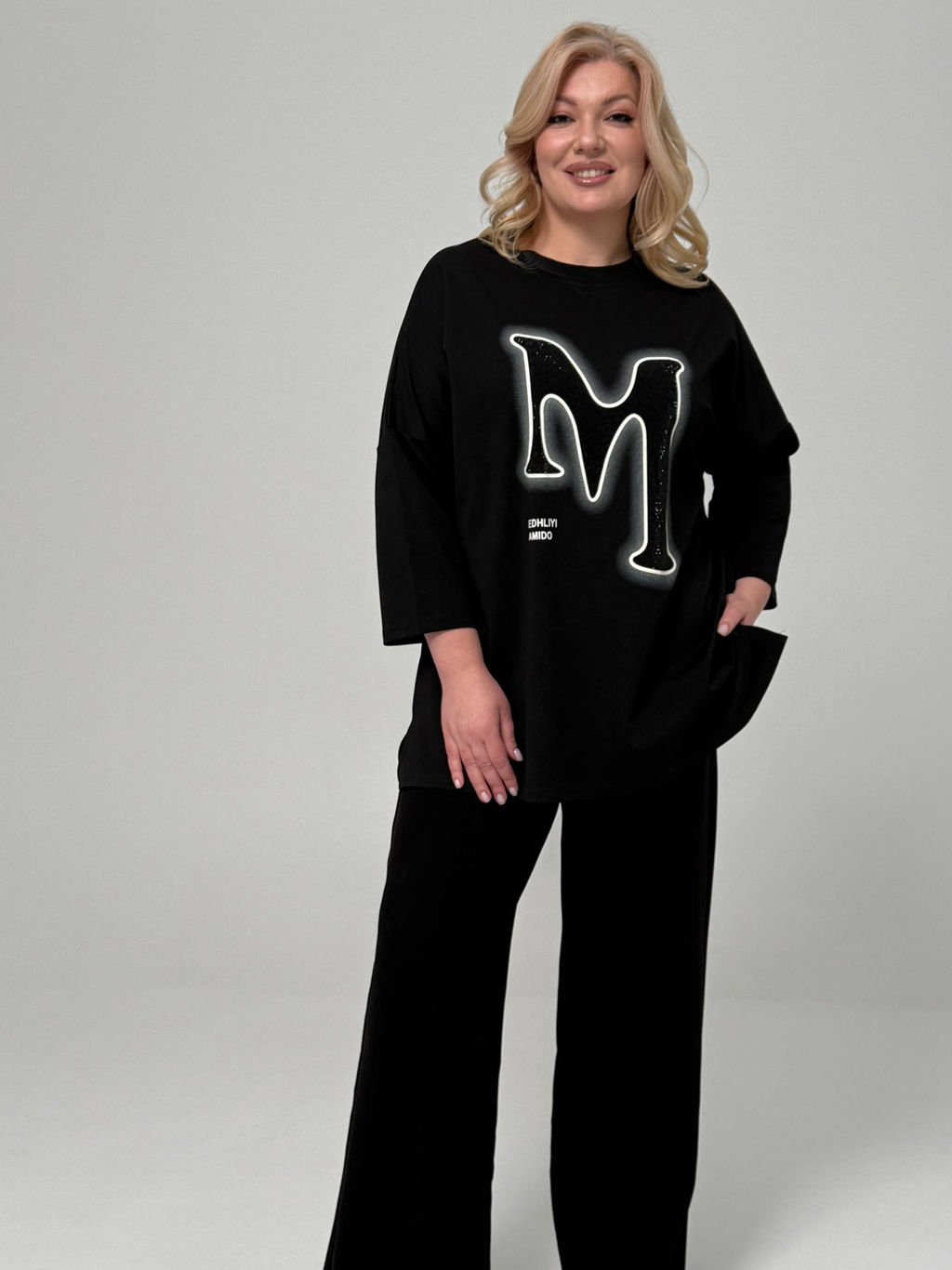 Туника удлиненная с графическим принтом "М" черная­