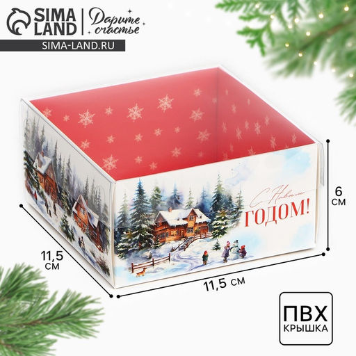 Цена за 5 шт. Коробка для кондитерских изделий новогодняя с пластиковой крышкой «Любимый праздник», 12×6×11.5 см