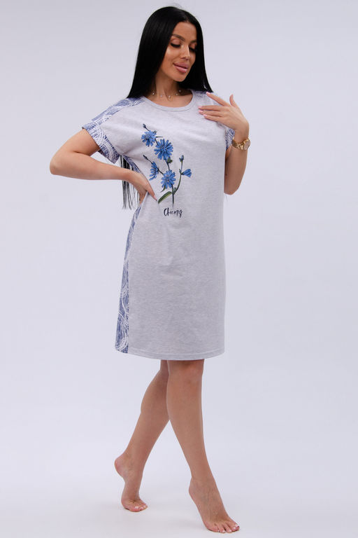 Трикотажная сорочка средней длины максимально комфортна, благодаря свободному и простому крою. Спинка и перед цельные, прямые без вытачек и швов. Хлопковая базовая сорочка с коротким рукавом украшена принтом, гипоаллергенна, позволяет коже дышать во время сна, всесезонная подойдет для любого времени года.
