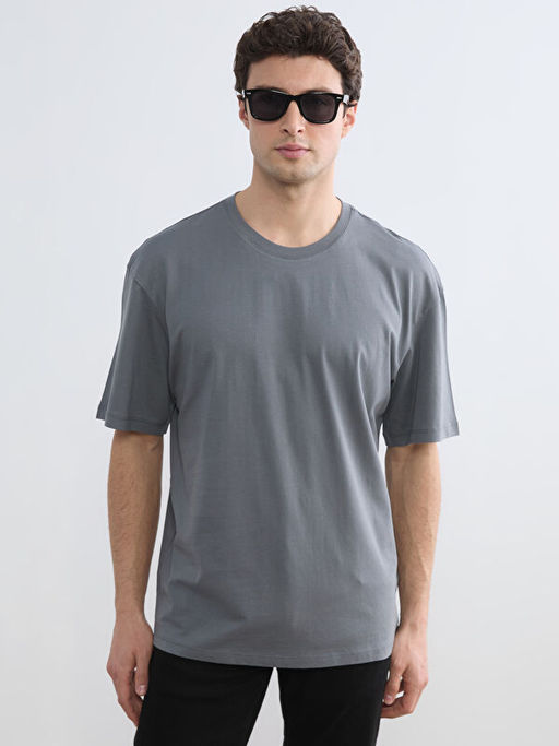 Bisiklet Yaka Bask?l? Penye Erkek Ti??rt
