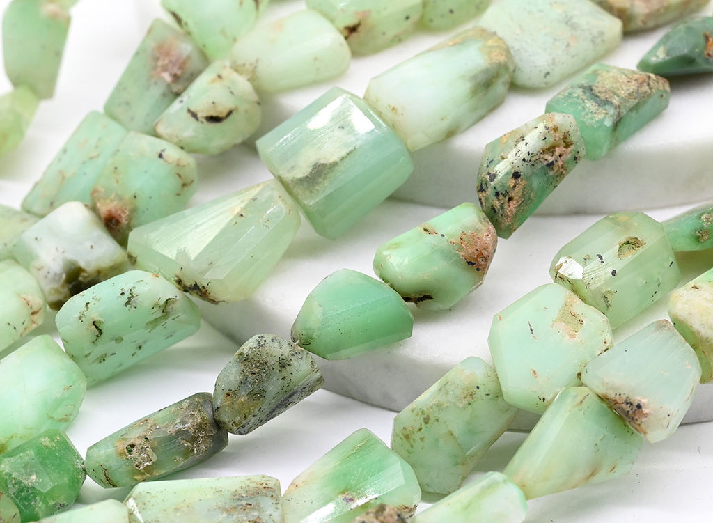 Бусины из натурального камня хризопраз в форме граненой галтовки.