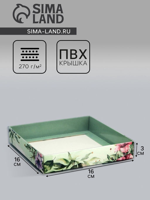 Цена за 5 шт. Коробка сборная с PVC крышкой, «Для тебя», 16×16×3 см