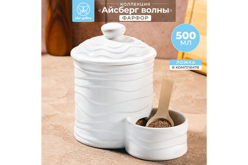 Банка из серии Айсберг волны от Elan Gallery послужит для организации хранения сыпучих продуктов на вашей кухне. Размер ёмкости 15,5х10х14,5 см, объём 500 мл. Высота внешней солонки 4 см, её объём 75 мл. Выполнена из высококачественного белого фарфора. Он не впитывает цвет продуктов и легко отмывается, благодаря чему надолго сохраняет свою белизну. Поверхность изделия украшают рельефные узоры в виде поперечных волн. Ложечка выполнена из бамбука. Ёмкость подойдёт для хранения разнообразных сыпучих продуктов. Заполните её сахаром, солью, а также другими специями и приправами, чтобы во время приготовления и приёма пищи всё необходимое было под рукой. Засыпьте внутрь чай или кофе, чтобы в любой момент заварить свежий напиток. Храните в ней крупы и макаронные изделия, ягоды, орехи и сухофрукты. Заполните контейнер сладостями: конфетами, леденцами, пряниками или печеньем. Подайте баночку к столу, чтобы идеально дополнить чайную сервировку! Ложечка поможет вам набрать необходимое количество продуктов. Банка имеет оригинальную форму, которая позволяет эффективно расходовать содержимое и предотвращает скопление остатков на дне. Не рекомендуется применять абразивные моющие средства. Без бамбуковой ложечки подходит для использования в посудомоечной машине и микроволновой печи. Бамбук нельзя замачивать! Поставляется в дизайнерской картонной коробке благодаря ей вам не потребуется дополнительная подарочная упаковка. Фарфоровая сервировочная посуда будет оригинальным подарком для хозяйки, ценящей не только практичность, но и привлекательность. Серия Айсберг волны от бренда Элан Галерея станет украшением любого кухонного инвентаря и позволит собрать красивый сервиз в едином стиле!