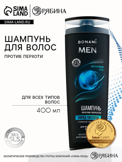 • Шампунь для всех типов волос против перхоти For men, глубокое очищение, 400 мл , BONAMI
