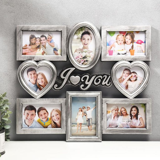 • Фоторамка - коллаж на 8 фото 12?12, 10?15 см Я люблю тебя, пластик, мультирамка, серебро, 43?43 см