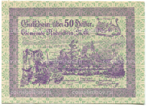 Банкнота 50 геллеров 1920 года Австрия Рабенштайн (нотгельд)