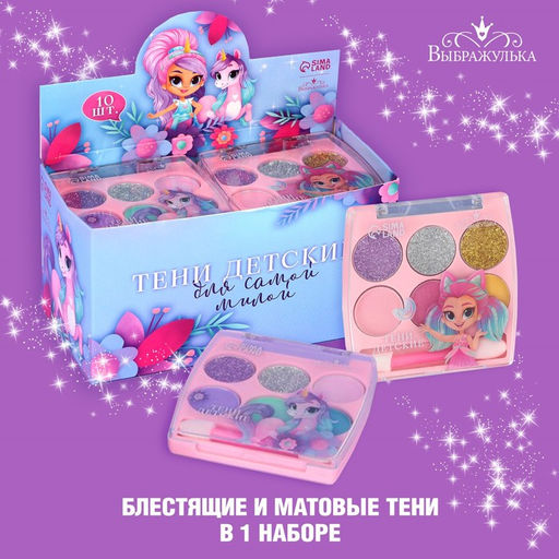 В детскую палетку Для самой милой входят тени 6 оттенков. Яркие матовые и блестящие тени для век очень понравятся девочкам.Все компоненты косметики содержат минимум пигмента, берегут детскую кожу и легко смываются тёплой водой.Упаковка теней прочная, выполнена из пластика, надёжно закрывается защёлкой. В комплект входит аппликатор для нанесения макияжа.С детской косметикой юная модница освоит искусство макияжа: научится сочетать цвета, разовьёт аккуратность и чувство меры, а также получит удовольствие от увлекательной игры. Бесплатная доставка: Да. Наша разработка: Да. Размеры товара: 1.8/6.7/6.7.