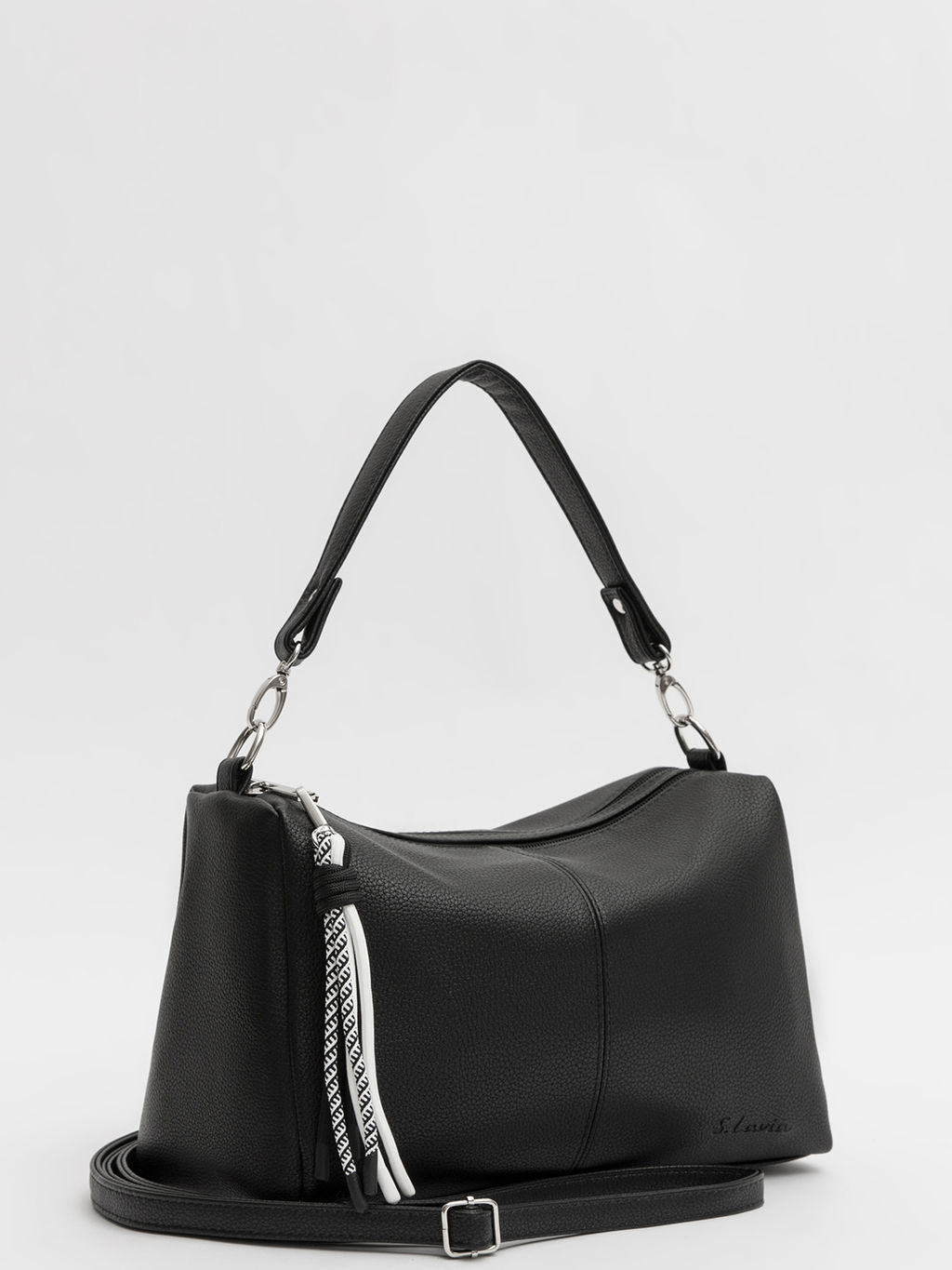 Сумка кросс-боди среднего размера удобный и стильный аксессуар для повседневного использования. Оснащена двумя отделами на молниях, что позволяет удобно организовать пространство. Внутри расположен небольшой карман для мелочей, а на задней стороне внешний карман на молнии. Сумка комплектуется длинным регулируемым ремнём на карабинах и короткой ручкой из винилискожи для комфортного ношения.­