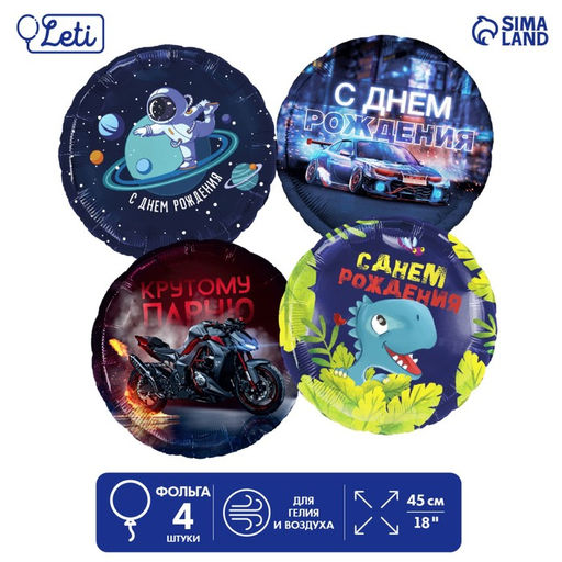 Воздушные шары фольгированные «С днём рождения», набор 4 шт.