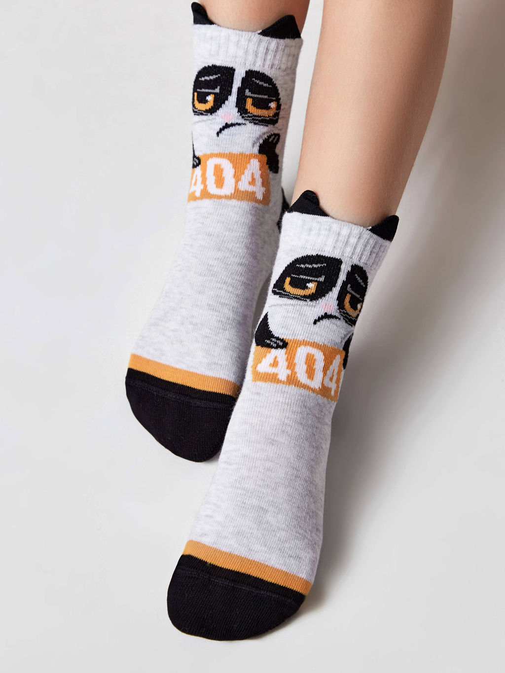 Детские носки из хлопка, с рисунками-мордашками и декоративными элементами на резинке в виде ушек. Для девочек и мальчиков.­