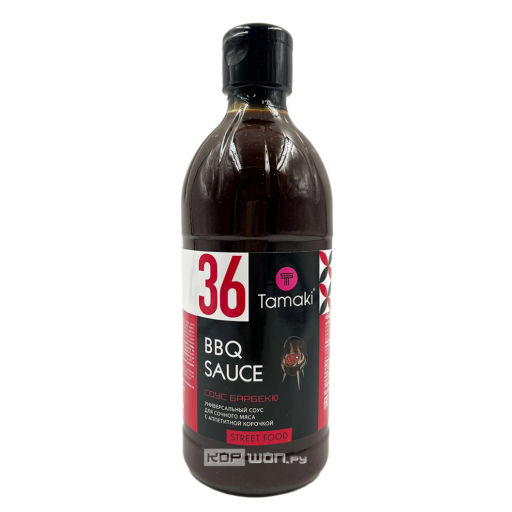 Соус для барбекю от бренда Tamaki из России приготовлен по традиционным рецептам, созданным американскими колонистами в XVII веке. Традиционно в основу соуса барбекю входят кетчуп, яблочный уксус, коричневый сахар, копченая паприка, тмин, соль и перец.