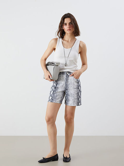 • Standart Fit Y?lan Derisi Desenli Kad?n Jean ?ort
