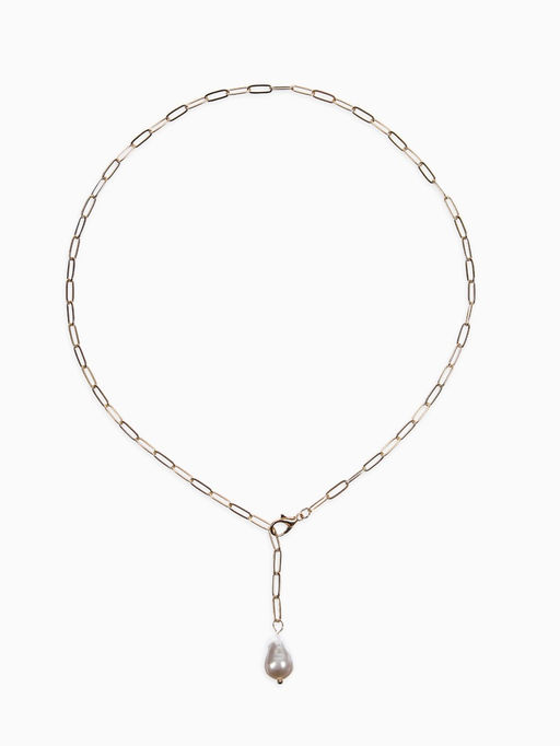 • Цена за 2 шт. Цепь с бусиной "Жемчужина", вытянутое звено, цвет белый в золоте
