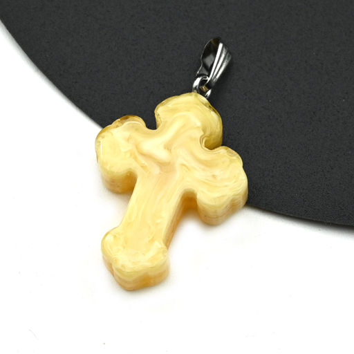 • Крестик на шею из янтаря 22*28мм цв.молочный
