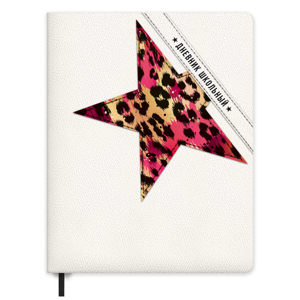 Дневник школьный арт. 72487 / 15 ЗВЕЗДА НА БЕЛОМ (кожзам: А5+; твёрдый переплёт, материал обложки: