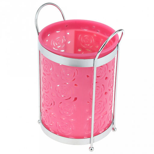 • Подставка хромированная для столовых приборов "Розы" 12,7х10,5х17,5см, на ножках, пластмассовая вставка д10,5см h13,5см, цвета в ассортименте: белый, розовый, салатовый (Китай)