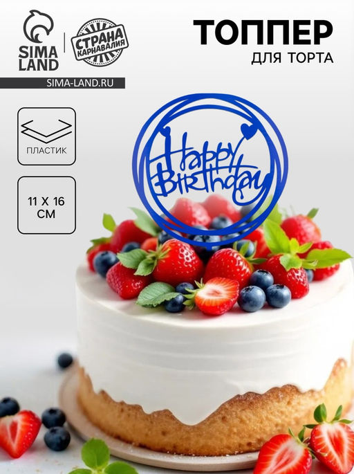 • Цена за 5 шт. Топпер для торта «С днём рождения», синий