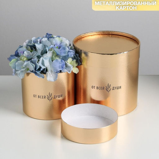 • Набор коробок золотых 2 в 1, упаковка подарочная, «От всей души», 12 х 12, 15 х 15 см