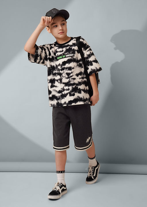 Трендовые шорты из хлопкового футера с эластаном. Модель оснащена эластичным поясом с регулировкой объёма талии, боковыми функциональными карманами, стильным принтом и модной тесьмой вдоль нижнего края - идеальный вариант для повседневного образа. 95%Хлопок5%ПУ(эластан)