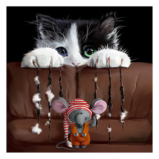 • Холст с красками 40х40 по номерам "Лапки-царапки" (в коробке) (30 цв.)