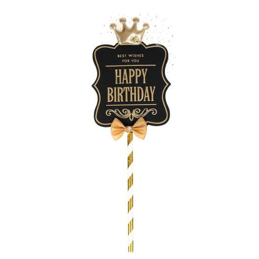 Цена за 3 шт. Топпер для торта «С днём рождения», чёрно-золотой