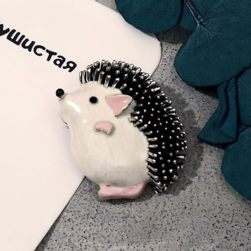• Брошь-кулон «Ёжик мечтатель», белый, розовый в чернёном в серебре