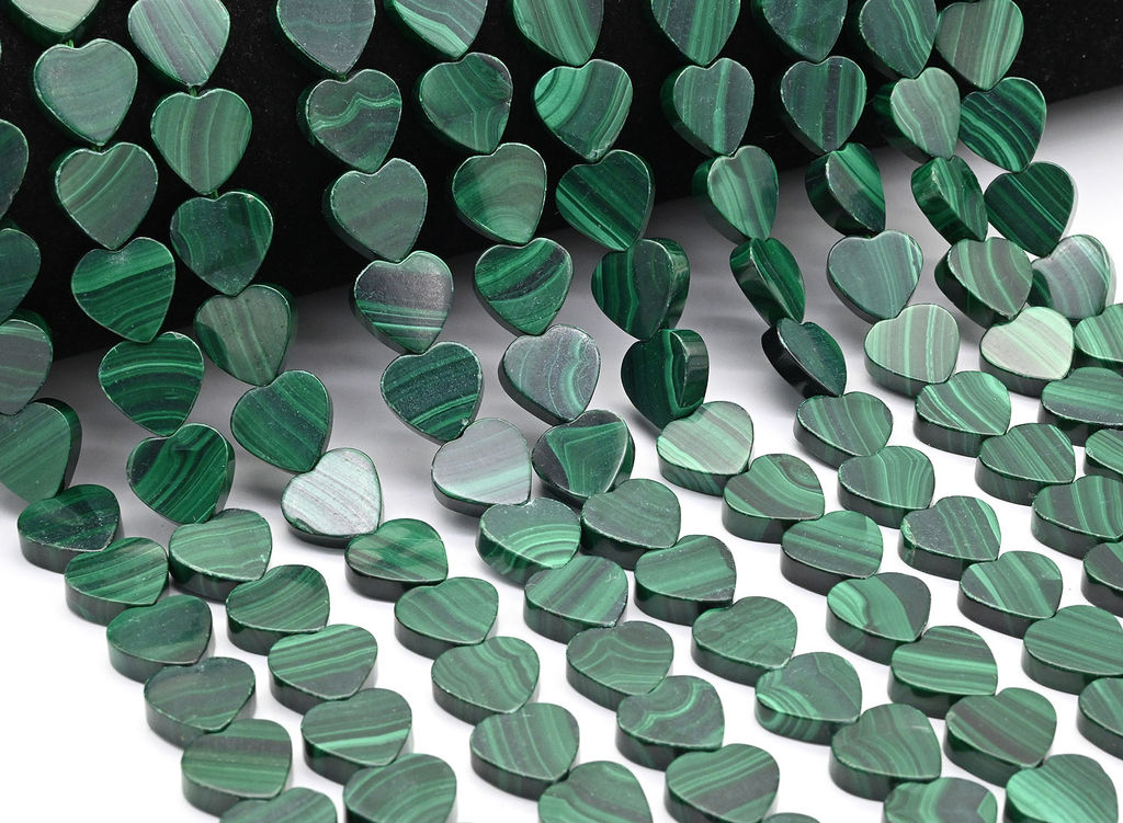• Бусины из малахита сердце 14*14мм, 40см, 35 бусин, 34,7г Радуга камня