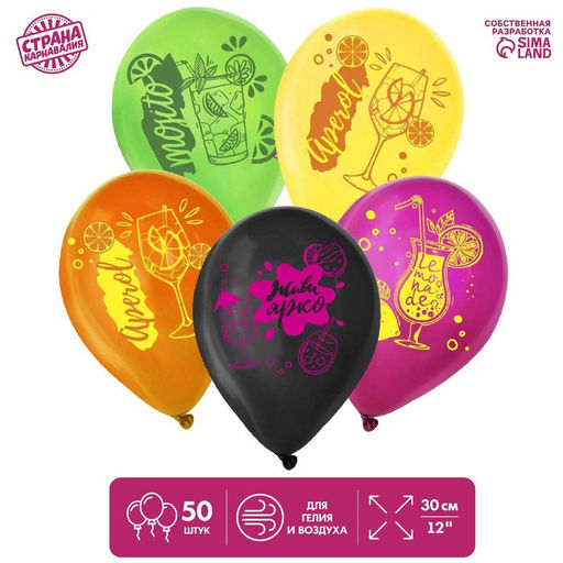 • Воздушные шары латексные 12" «Живи ярко», 50 шт.