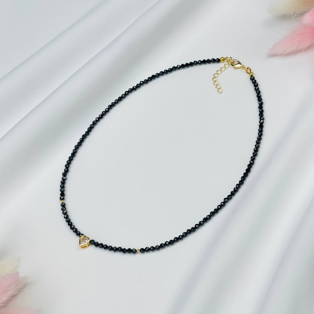 • Чокер из черной Шпинели со вставкой "Сердце" огранка