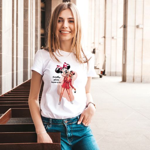 Каждый кристалл приклеивается вручную, что подтверждает прохождение 3-го этап контроля качества футболки и отсутствия производственного брака.