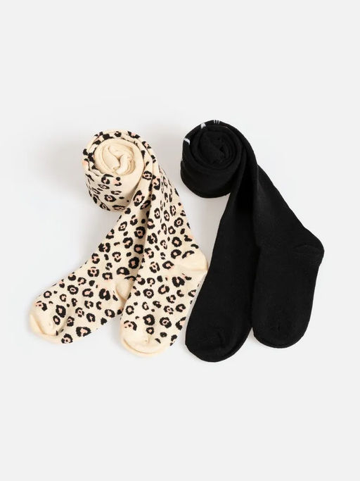 Набор из 2-х пар детских хлопковых колготок поможет создавать забавные и стильные образы. Колготки выполнены из мягкой и дышащей хлопковой пряжи, которая делает их подходящими для длительного ношения. По линии талии расположена мягкая эластичная резинка, благодаря которой обеспечивается удобная посадка для девочек разного телосложения. В набор входит одна пара черных колготок с рисунками кошачьей мордочки в районе колен, и одна пара бежевого цвета с леопардовым принтом. Стильные теплые колготки для девочки оригинально дополнят образы, придавая каждому из них уникальный штрих. Изделия подойдут для создания аутфитов на каждый день.20234460065