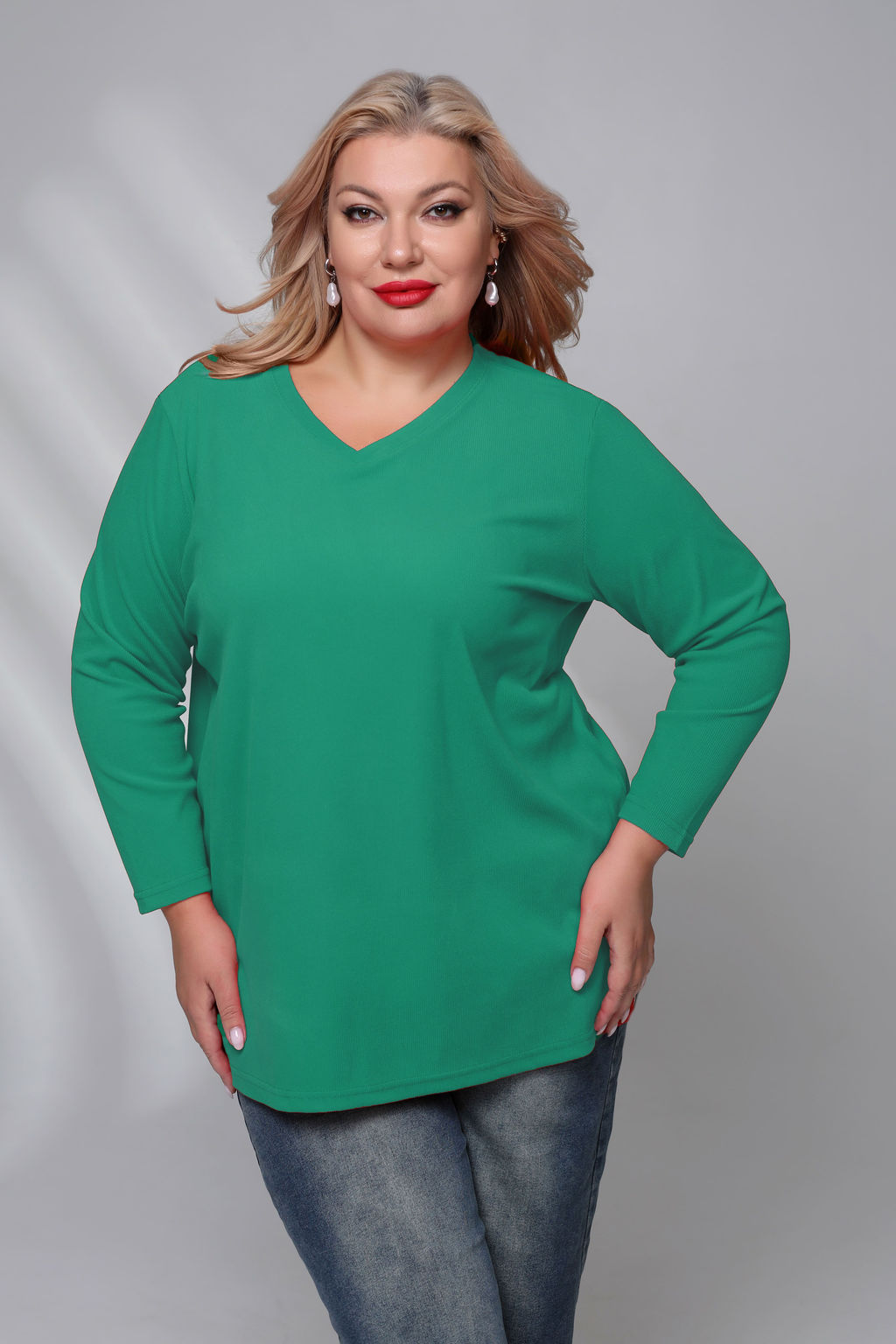 Туника однотонная V-вырез с разрезами по бокам бирюзовый­