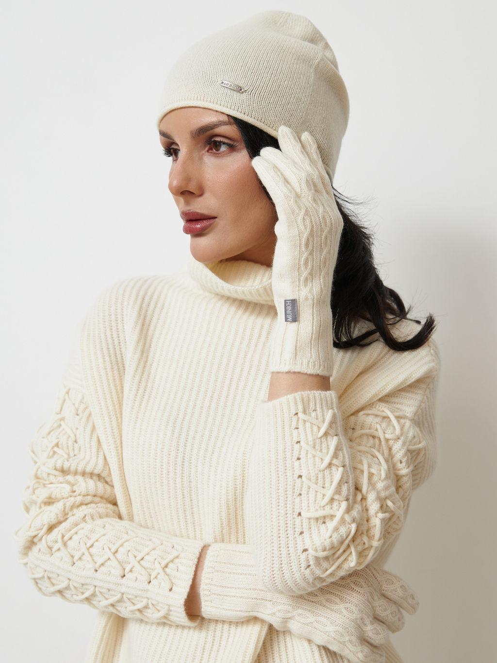 • Шапка из кашемира 04254 кремовая