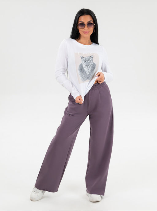 Стильные и удобные трикотажные брюки палаццо на резинке создают неповторимый образ, не говоря о комфортности их ношения. Расклешенные от бедра и завышенная линия талии - визуально стройнят. Штаны изготовлены из качественного футера 2х нитка с добавлением искусственных волокон - для предотвращения деформации ткани, стирайте в режиме бережной или ручной стирки при температуре не выше 30 градусов и брючки не изменятся и не дадут усадку. Универсальный крой хлопковых брюк сочетает в себе разные стили: вы можете носить их с кедами, как спортивные штаны или надеть на работу, в школу и университет, институт - как офисные повседневные. Средняя посадка по талии и не тугая резинка хороший вариант для беременных девушек, будущих и кормящих мам. Трендовые брюки можно носить и дома, как домашние широкие штаны шаровары. Такие брючки универсальные и подходят под разные типы фигур.­