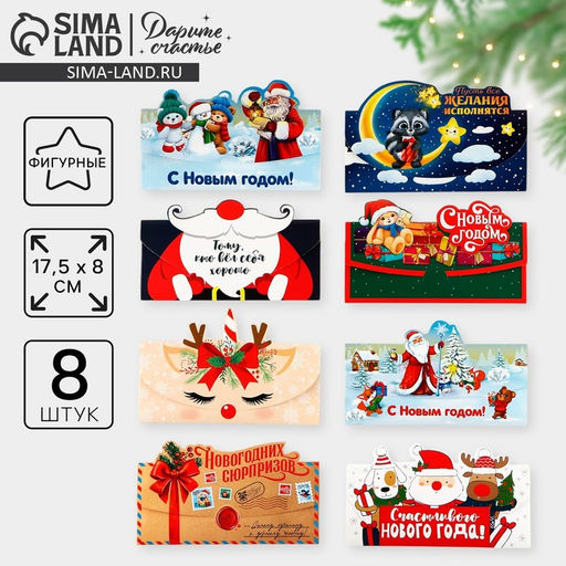 • Конверт для денег фигурный «С Новым годом!», 8 шт., 17.5×8 см