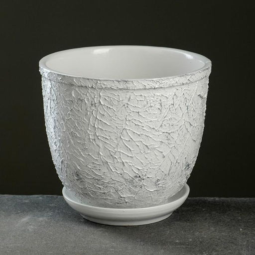 • Горшок для цветов «Белое серебро», 1.8 л, d=15.6 см, h=14.4 см, керамика, с поддоном, белый