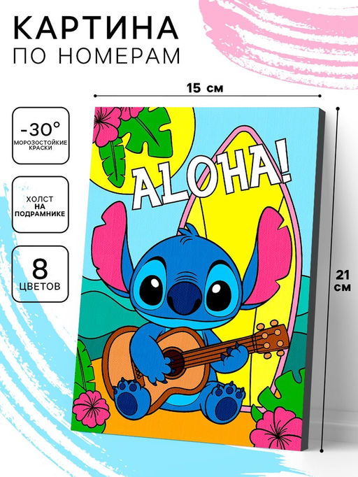 • Картина по номерам для детей «Стич с гитарой» 15×21 см