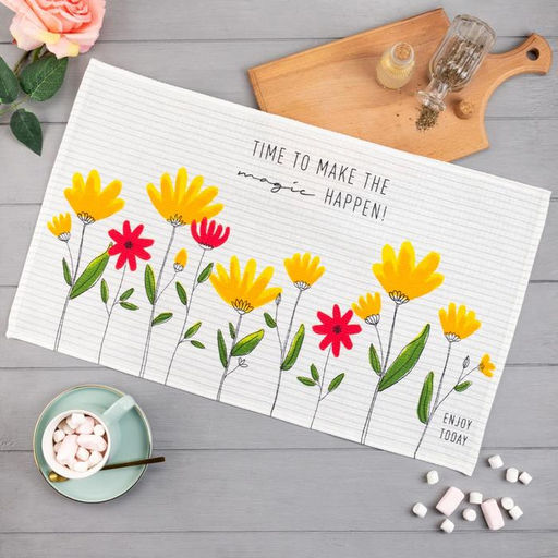 Полотенце Enjoy today функционально используется для быстрого и удобного очищения посуды, рук и рабочих поверхностей на кухне. Добавьте в свой быт нотку радости с этим полотенцем!